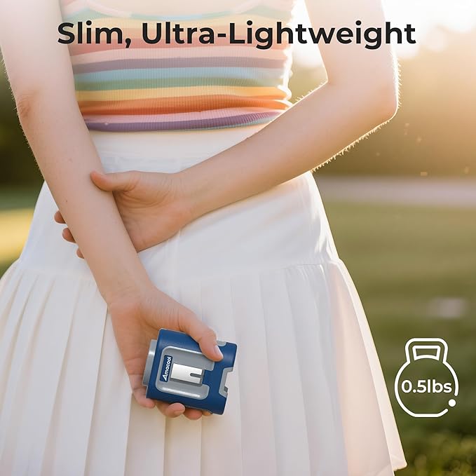 - 【Lightweight and Low Noise】- Weighing only 0.5 lbs and palm-sized (3.27 × 2.48 × 3.74 in), this mini body fan is easy to clip onto your belt and shirt. Operating at impressively low noise levels——just 35dB at speed1 and 50dB at speed4, so you can use indoor such as kitchen, gym, office, without causing any annoying disruption. With a simple one-button control, it's hassle-free to use for travel, camping trip, walk, jogging, running errands