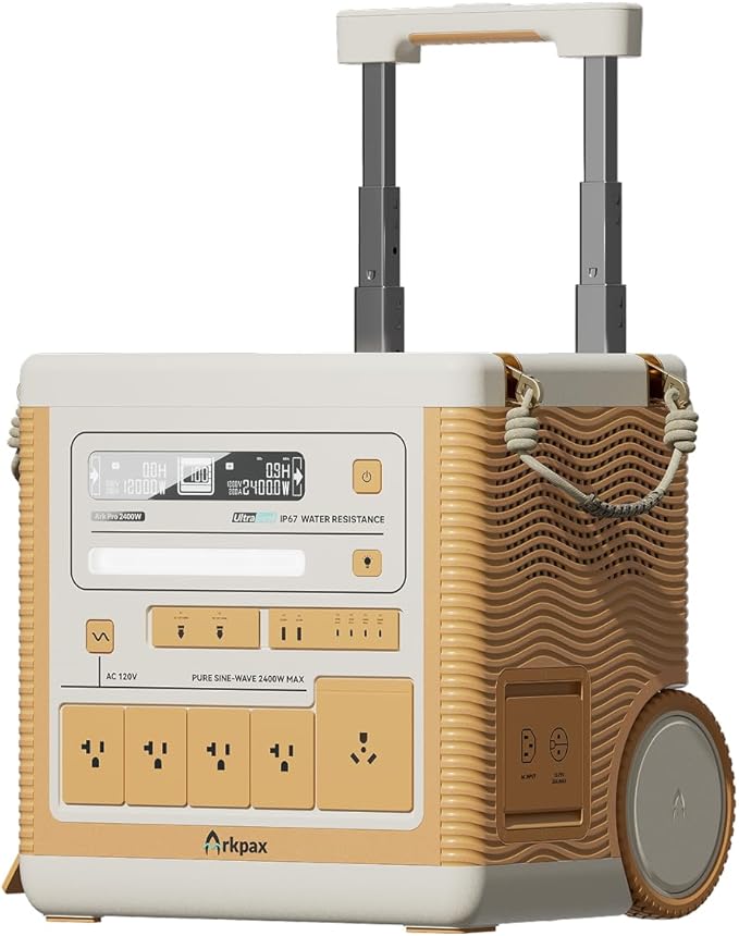 - Unstoppable Protection: IP67-rated waterproof & dustproof protects against rain, snow, and desert storms. The Ark PRO 2400W is suitable for off-grid cabins, RV adventures, or disaster relief.