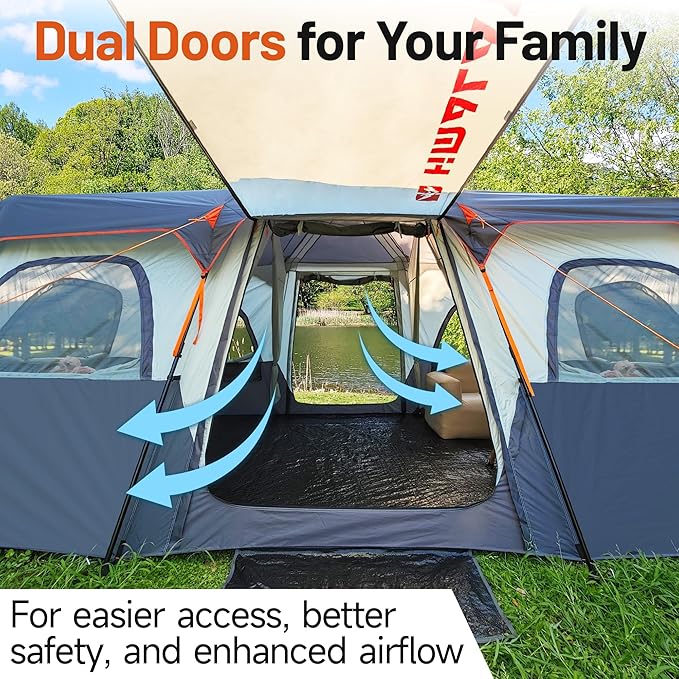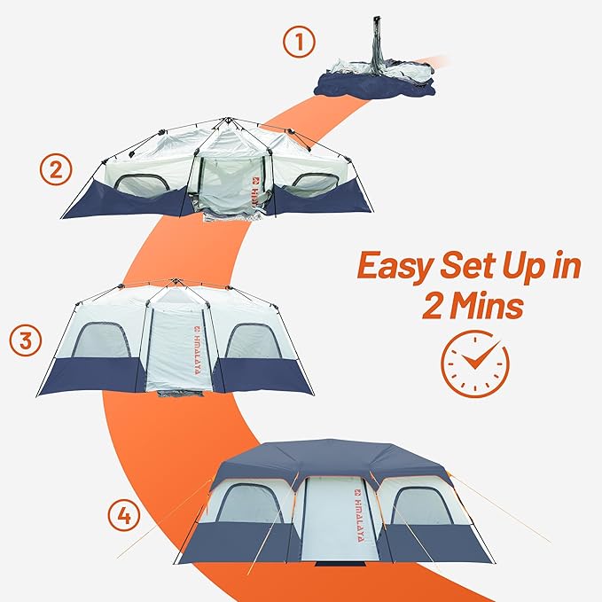 Family Camping Tent for 8-12 People, 2-Minute Instant Setup with 2 Room Dividers, Waterproof Windproof Ventilated, Easy Carry for Outdoor Camping Hiking Picnic