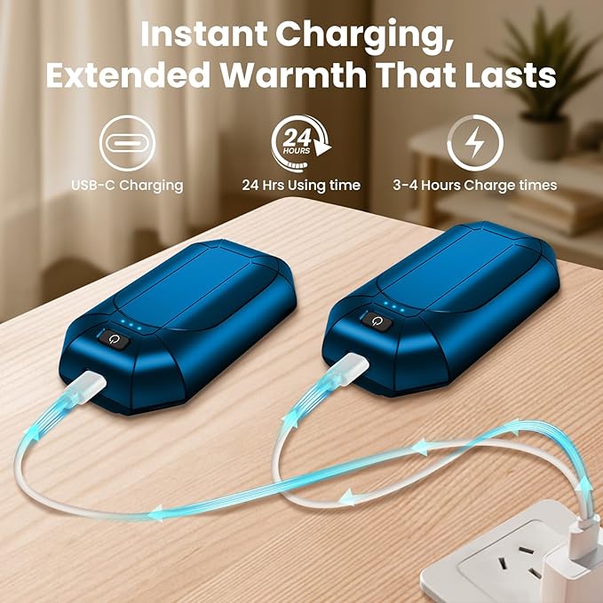 - 🌞【2-in-1 High-Performance Hand Warmer】: The 2 packs hand warmers are uninterrupted use, and can be easily split into 2 or combined into 1 depending on what you want. uses high-quality tech aviation-grade aluminum ABS material, anti-vibration, explosion-proof, and radiation-proof. No odor and safer even when electric hand warmers work continuously. Holds ample power for most winter outdoor activities. The rechargeable hand warmers also relieve Raynaud's symptoms.