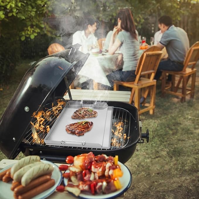 Stainless Steel Griddle Plate for Charcoal/Gas Grill, Flat Top Griddle with Even Heating for BBQ, Camping, Tailgating and Parties, 17" x 13" Silver