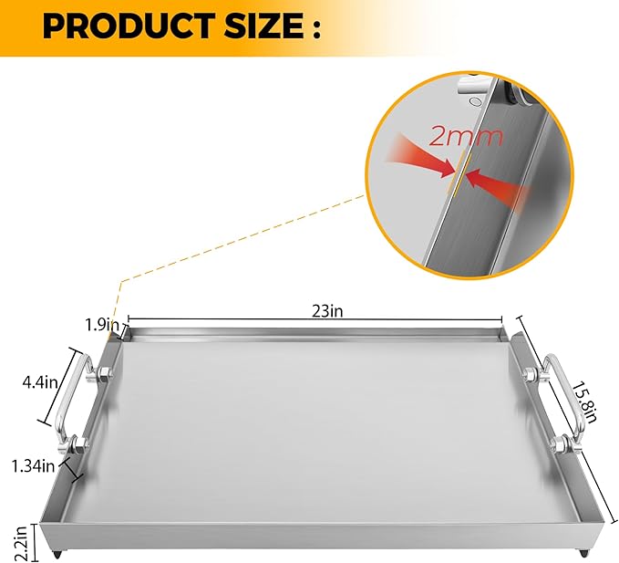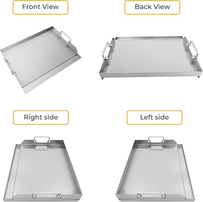 - Durable Material: The flat top griddle is made of food-grade stainless steel, which is durable, heat-resistant, rust proof, non stick, and easy to clean