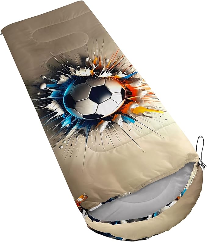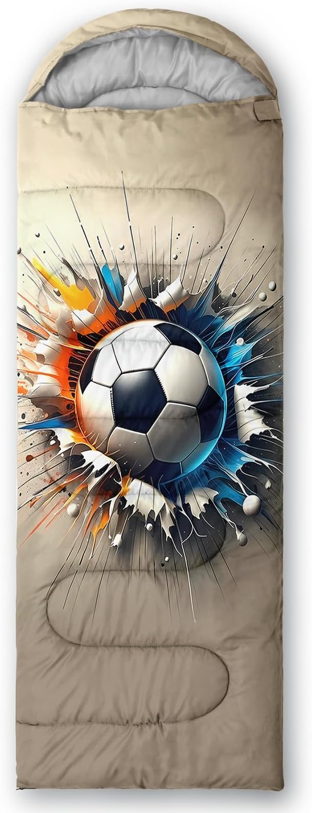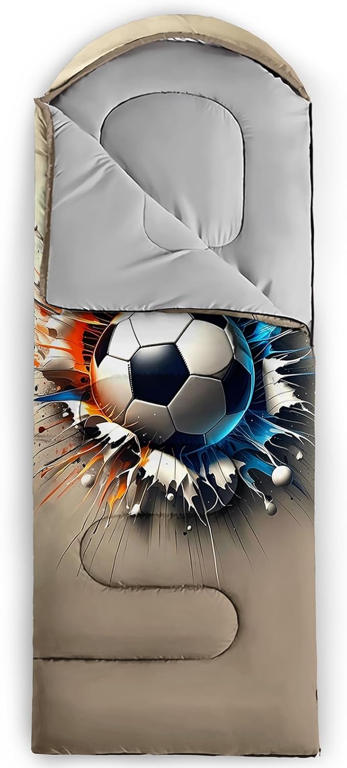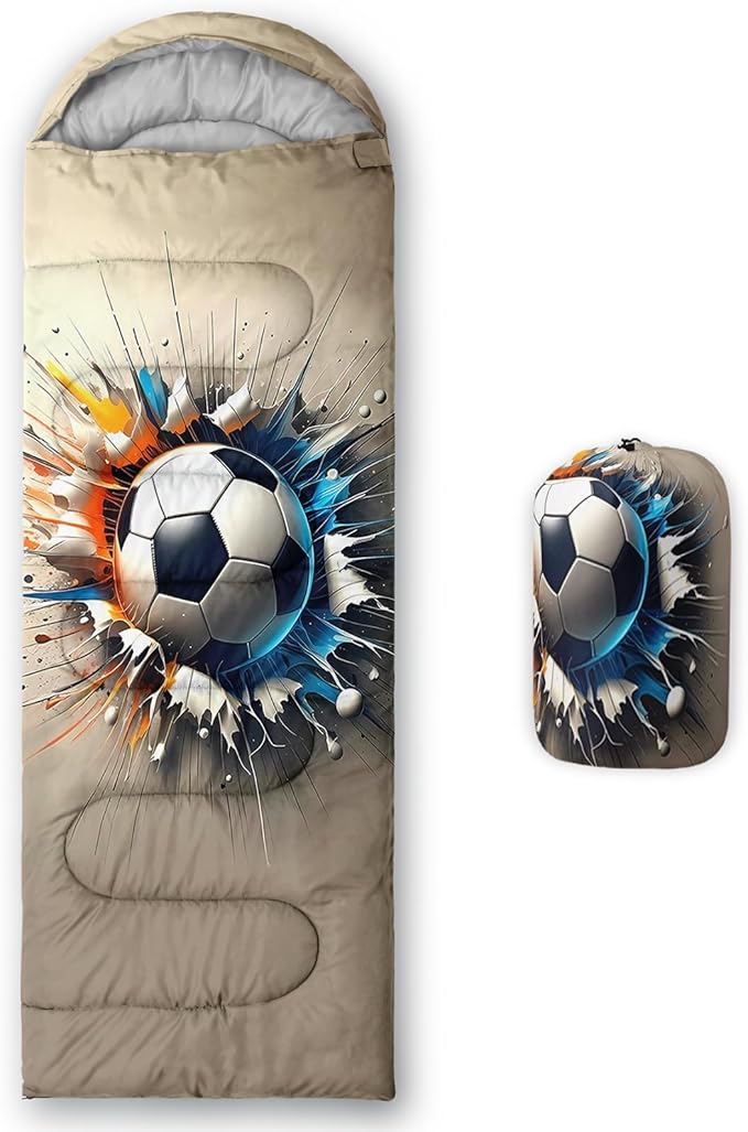 - 【Fits For 3 Seasons】: Size - 31 by 90 inches (W x D). Our soccer sleeping bag can be used in 3 seasons with a design temperature of 32℉-77℉(0℃-25℃). These Sleeping bags also have a weather resistant waterproof design to keep you warm and prevent you from any dampness.