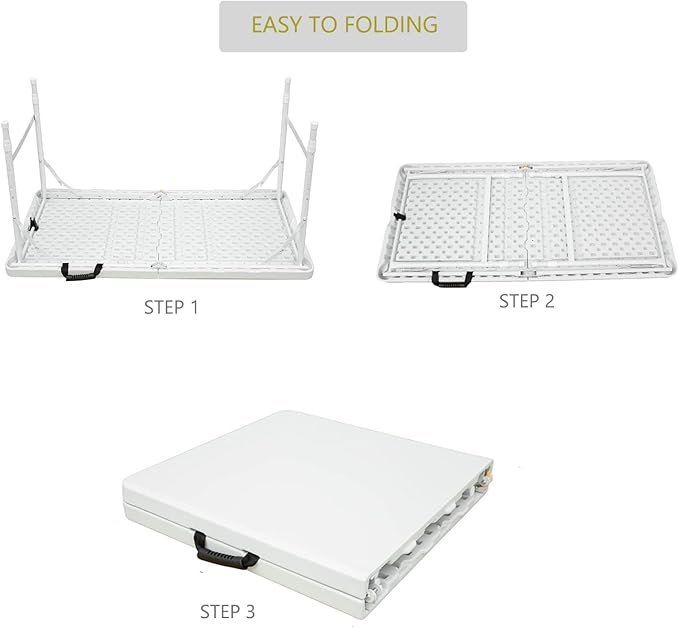 Portable Plastic Folding Table 4ft/6ft/8ft Heavy Duty White Black Picnic Dining Table Fold-in-Half for Camp Party Kitchen Indoor Outdoor (White, 4FT)