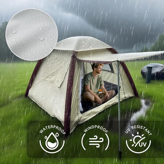 - Breathable and Comfortable - The air tents for camping adult is equipped with 2 doors and 2 windows (mosquito screens), and the top has breathable holes, truly achieving five sided breathability, allowing fresh warm air to quickly enter and exit. It can prevent mosquito bites and are suitable for 4 season tents for camping