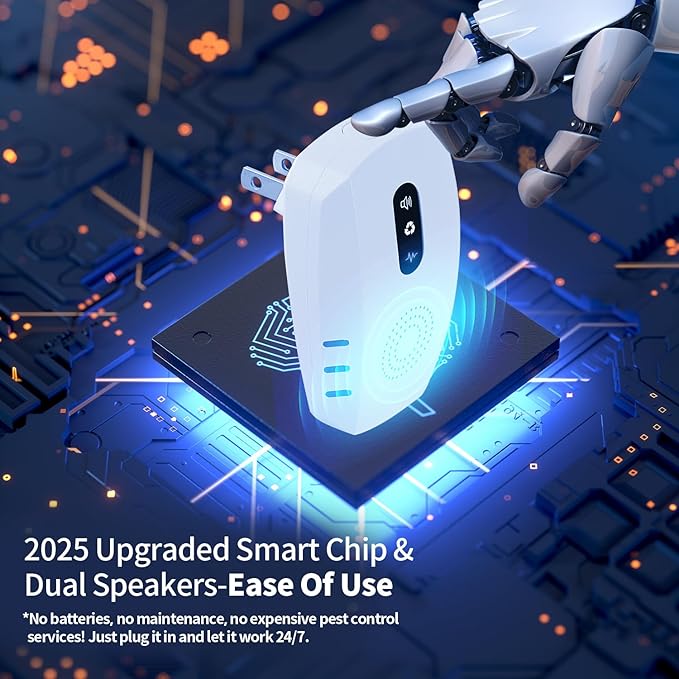 - 【Energy-Efficient & Silent Operation】 Our ultrasonic pest repellent indoor consumes only 3 - 5W of power, making it more energy-efficient than a typical small desk lamp. It operates without batteries and is plug-and-play. The device runs silently and odorlessly, ensuring undisturbed sleep. This energy-saving and silent operation makes it an ideal choice for a peaceful, pest-free home.