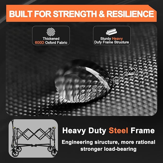 - STURDY&DURABLE WHEELS:The premium PVC wheels of this wagon cart are designed for all terrains.The front wheels can rotate 360°and all wheels are removable,Convenient and practical.
