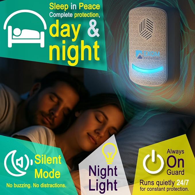 - Supply voltage: 100-240V, AC 50/60Hz. Power consumption: 1-3w. Dual effect Ultrasonic repeller and night light. Protect over 1600 square feet. Our product has passed all tests and is protected by a patent