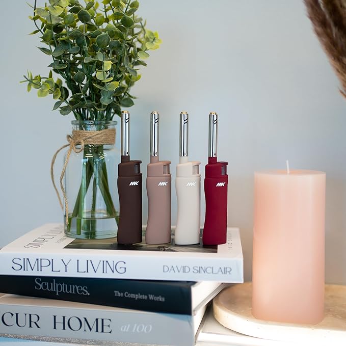 MK Candle Lighter, Butane Refillable Wind-Resistant Flame, 4-Pack for BBQ, Camping, Outdoor Use (Neutral-4PC)
