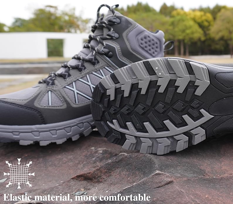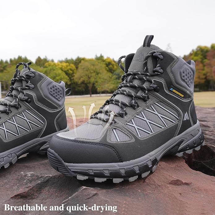 Queday Men's Hiking Boots Waterproof Outdoor Lightweight Trekking Shoes Ankle High Boots