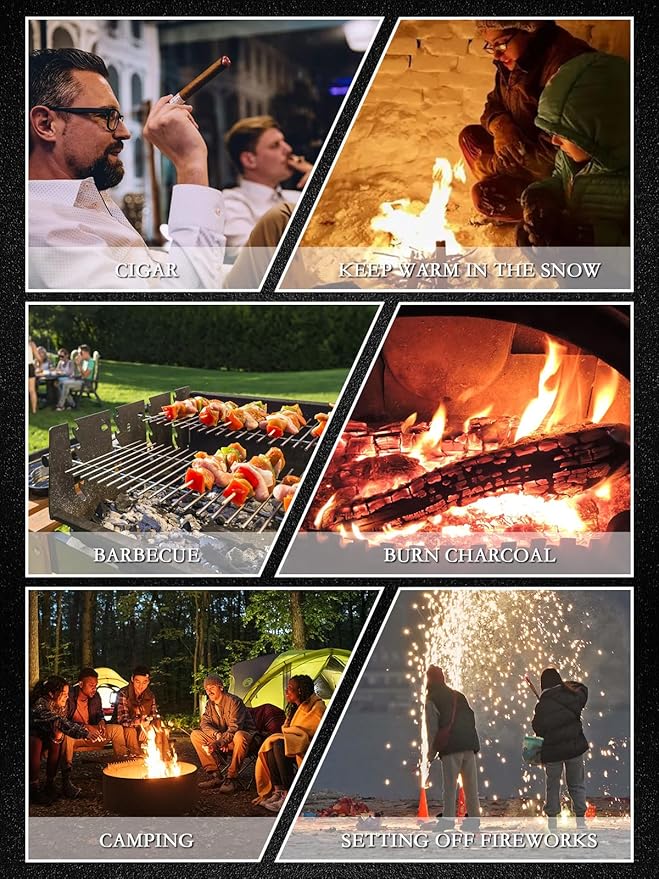 - 【Versatile for Indoor & Outdoor】 Ideal as torch lighter, BBQ lighter, candle lighter, camping lighter, or fireplace lighter; 360° ignition for easy lighting from any angle.