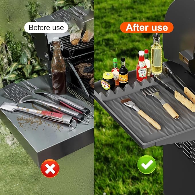 - Multi-Purpose Grill Accessory: Use as a spatula holder, condiment tray, or trivet—protects surfaces from scratches, stains, and heat damage while grilling.