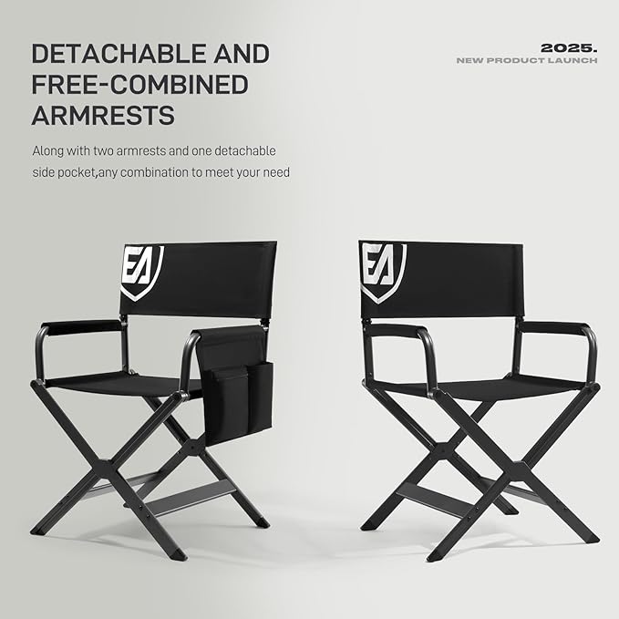 EVER ADVANCED Aluminum Lightweight Directors Chair Foldable, Folding Studio Movie Chairs Camping Event Vendor Chair, 19" Seat Height Black Fabric/Grey Frame, Support 350lbs