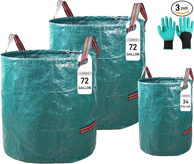 2x72Gallons+1x34Gallons (Free Gloves) Leaf Garden Bags,Reusable Heavy Duty Yard Waste Bag Set,Standable Design and Reinforced 4 Handles for Garden,Lawn,Leaf,Grass,Debris,Camping
