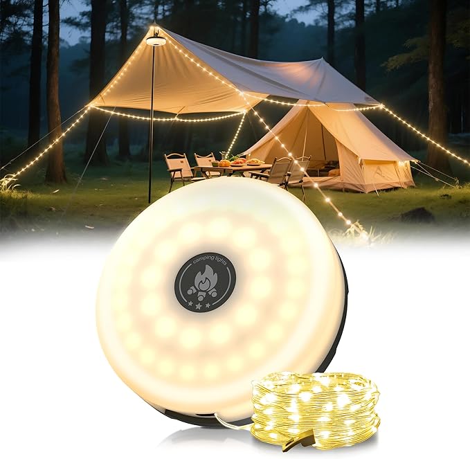 - 【IPX4 Waterproof & Outdoor-Ready】 - Built for outdoor durability, the camping lights have an IPX4 waterproof rating and work well in light rain or damp conditions. Perfect for tents, yards, patios, RVs, or even as backup lights at home during power outages.