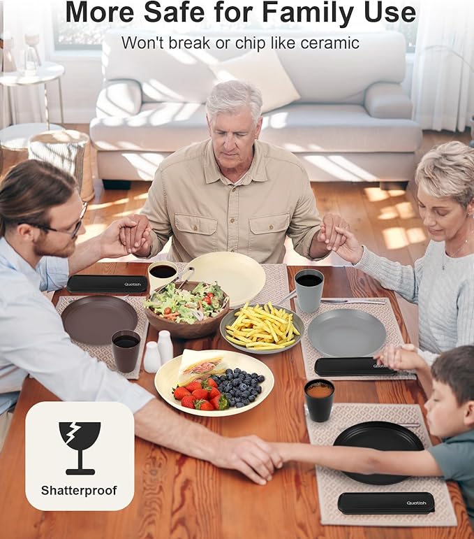 - Durable and Kid-Friendly: Nearly unbreakable, shatterproof plastic dinnerware set with raised edges, resistant to chipping, scratches, and wear-related damage. Ideal for camping, RVs, beach houses, and safe for toddlers and children