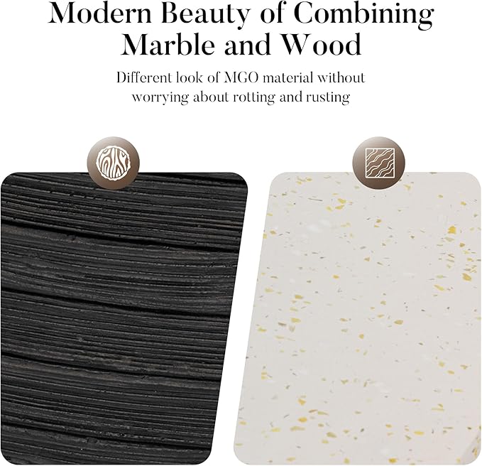 - Design Masterpiece: Upgrade your outdoor space with our 2025-designed fire pit table. It combines weather-resistant concrete and wood grain veneer. The baking varnish layer prevents the fire pits from corrosion and rusting. It will be the highlight of your backyard.