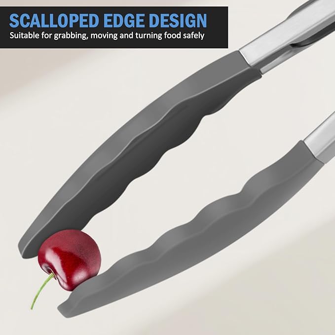 - 600ºF High Heat-Resistant: The silicone tongs feature BPA free silicone tip that will not scratch your nonstick cookware. Scalloped edges securely hold food. EEKEDO Tongs are great for frying, grilling, stirring, and serving. Non-stick surface easy to rinse, dishwasher safe.