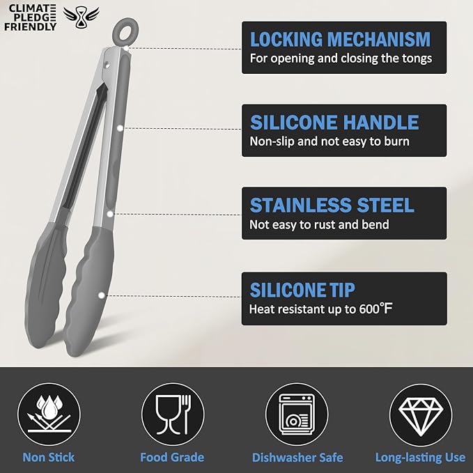 - Premium Materials: EEKEDO kitchen tongs are constructed with food-grade stainless steel and silicone. Carbon free.Thickened stainless steel makes it stronger and more durable.It is convenient and safe to your cooking.
