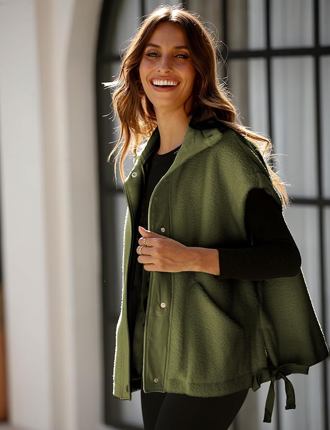 Athlisan Womens Fleece Vest Casual Sleeveless Button Down Sherpa Jacket Outerwear with Pockets