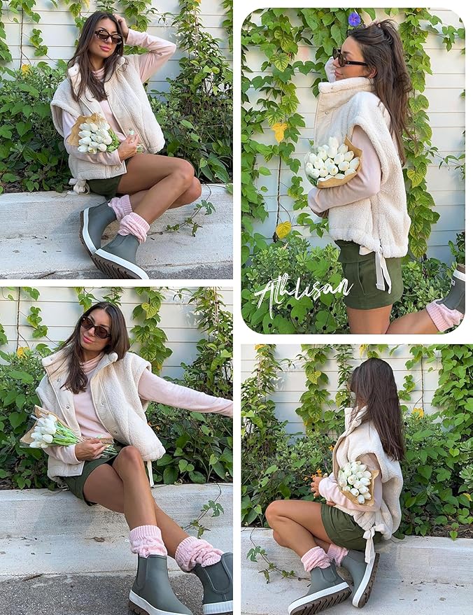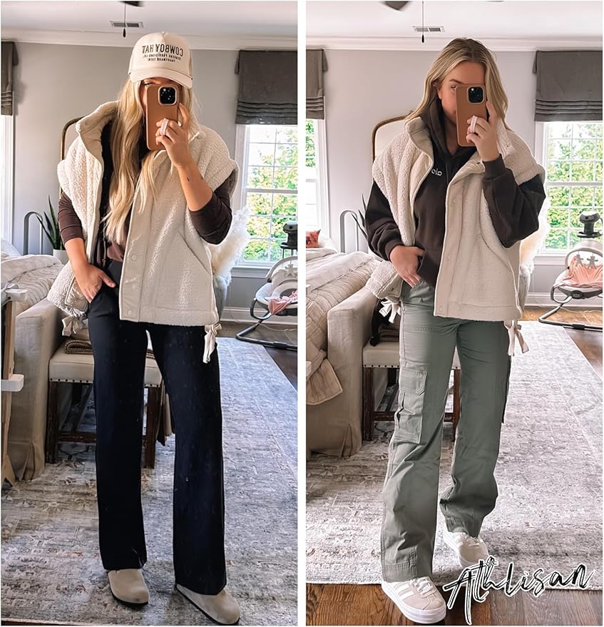 Athlisan Womens Fleece Vest Casual Sleeveless Button Down Sherpa Jacket Outerwear with Pockets