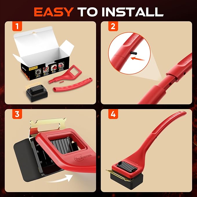 - MULTIFUNCTIONAL GRILL SCRAPER: The brush head of the grill cleaning brush is equipped with a scraper that can adapt to various grill shapes. Through the precise contact angle, it can quickly remove stubborn grease and heavy carbonized dirt, and easily remove sticky residue