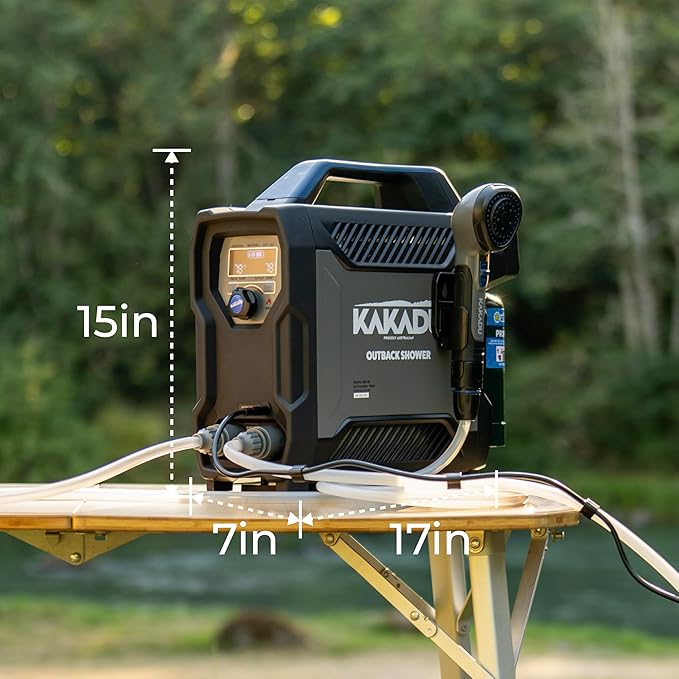 Kakadu Portable Camping Outback Shower, Instant Hot Water for Outdoor Use - Slimline Design, Rechargeable Lithium Battery, Adjustable Shower Head, Slim Pump, Digital Display