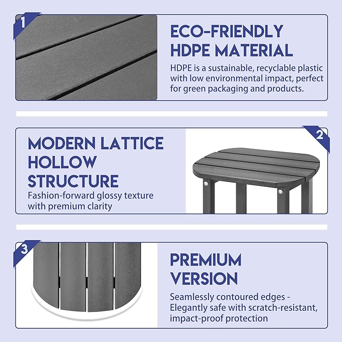 LZRS Outdoor Side Table - 2-Tier Adirondack HDPE Patio End Table for Pool, Porch,Balcony & Backyard,Weather Resistance for Indoor and Outdoor use(Grey)