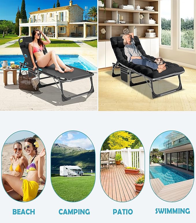 - Versatile Functionality: Can be used as a lounge cot for sunbathing; suitable for indoor and outdoor activities like camping, hiking, or fishing