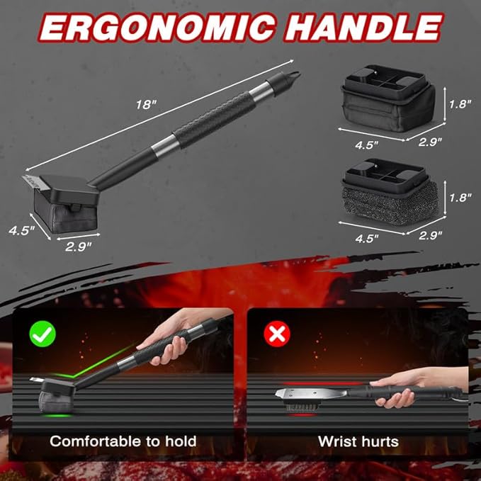 - [Easy to Clean and Reusable] - You can remove the grill brush head from the handle after use, wash it in the dishwasher or by hand, and hang it to dry. Replaceable cleaning heads designed to extend the life of your grill brush while saving you tons of money.
