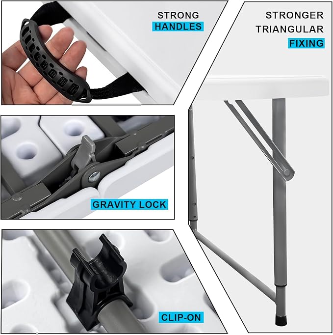 - Strong Support - Powder-Coated Steel Legs And Gravity Locks Help To Completely Fix The Table At Any Time And Any Place. In Addition, Our Table Legs Are Also Equipped With Non-Slip Foot Covers, Which Can Not Only Protect Your Floor But Also Prevent Slipping.