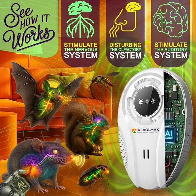 - Family & Pet Safe Unlike traps, poisons, or sprays, this device is 100% chemical-free, odorless, and silent for humans. Works as an ultrasonic mouse repellent without harming children or pets.
