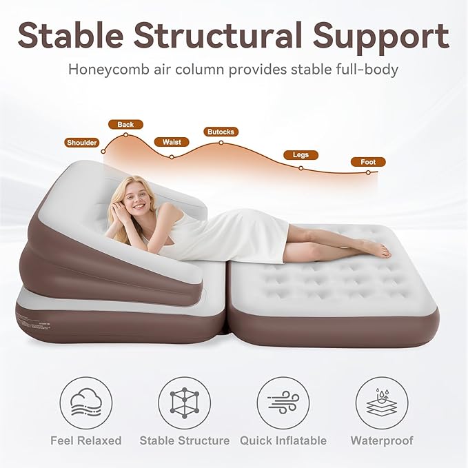 - 【Multiple modes】Our inflatable sofa mattress is large enough to accommodate two people. At the same time, it has a strong load-bearing capacity and can bear 440 pounds. The sofa mode is folded, with the size of 54.3 "x39.4" x35.4 "