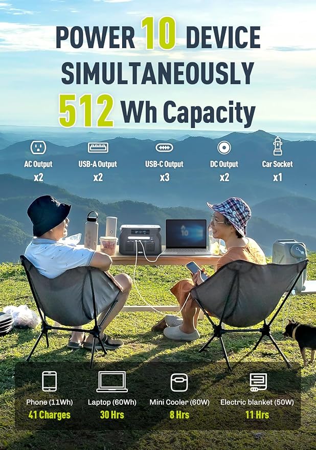 - 【High Capacity And Long Runtime】The IEE P800 packs a 512Wh LiFePO4 battery and 10 output versatile ports,capable of charging multiple devices simultaneously,and powering a variety of devices, from small electronics to larger appliances.Supplies to charge other devices at the same time while charging.Smart Display provides real-time information on power consumption and remaining battery levels.