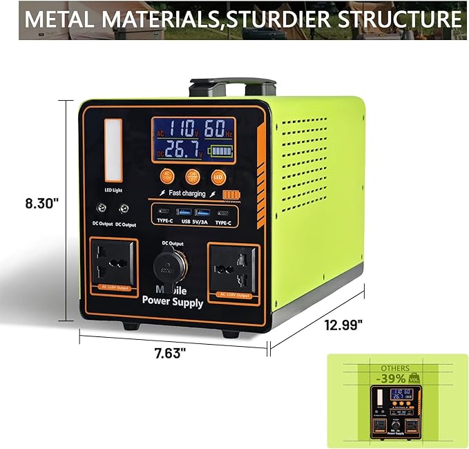- Powerful Function: Equipped with LFP automotive grade power battery and 1000W-1200W AC output, it can supply power to various appliances such as ice makers, laptops, cameras, drones, kettles, etc. Its capacity is 1115Wh and its volume is very small. Equipped with a portable controller, it is an excellent companion for outdoor camping, road travel, or emergency situations.