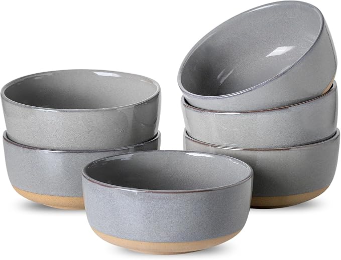 Ceramic Soup Bowls Set of 6,30 Ounce Stoneware Cereal Bowl,Porcelain Nesting Bowls for Oatmeal,Popcorn,Soup,Pasta,Fruit,Housewarming Gift,Microwave & Dishwasher Safe,Gray