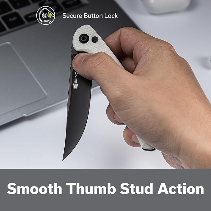 SENCUT Skelfin Pocket Knife for EDC, Folding Knife with 3.3'' Blade & G10 Handle, for Camping Hiking S25007-1 (White)