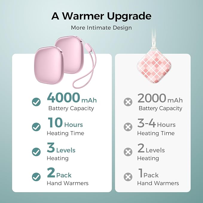 - Unique design: The only square minimum size 2in1 electric hand warmer on the market, smooth surface, ergonomic design, large area heating area, with hand rope portable, stylish electric hand warmer.