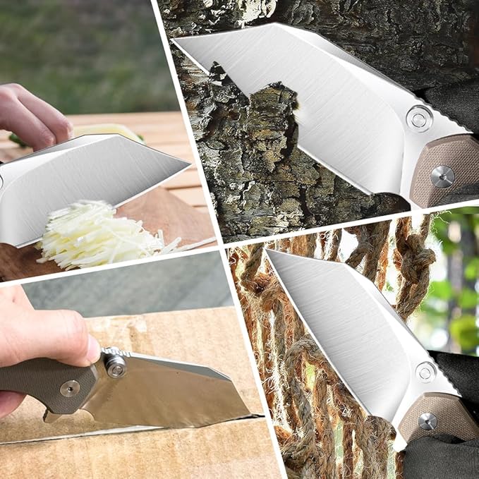 ioko Folding Pocket Knife, 3.5-Inch D2 Steel Blade, G10 Handle, EDC Camping Survival Knife with Clip (Brown)
