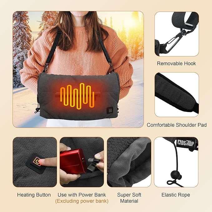 - Ideal Gifts: Equipped with a shoulder strap and zipper pocket, this hand warmer is lightweight and portable, allowing you to relax on the office or at home or outdoor. Its advantage is that it is as convenient as a pocket, but the difference is that it can warm your hands faster. Perfect as birthday gift, thanksgiving gift and Christmas gift for Mom, Dad, Friends.