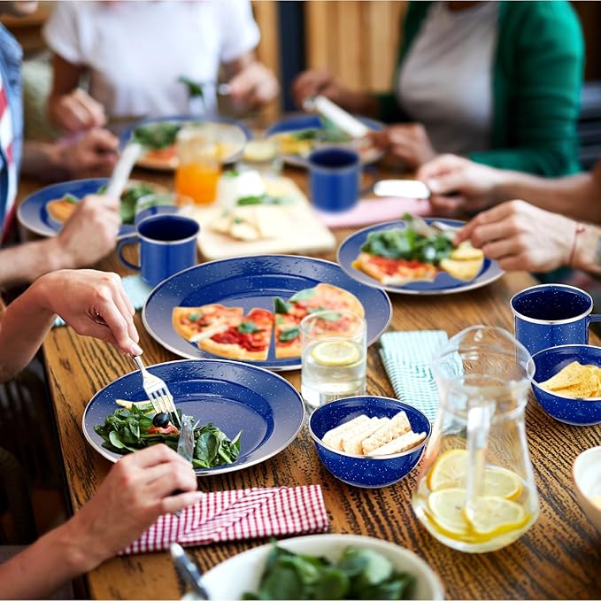 - Dishwasher Safe and Easy to Clean: with a quality construction, these camping serving set resists sticking and are dishwasher safe, taking convenience to the next level; Thus, ideal for your campsite to kitchen, this resilient and reusable enamel dinnerware set is a must have addition to your outdoor or indoor dining experience