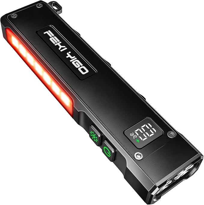 Feki Yigo G02 EDC Rechargeable Flat Flashlight 1800 Lumens White LED/UV/RGB Signaling Flashlights, Waterproof Magnetic Clip on Flashlight for Outdoor Home Emergencies, Camping Essentials(Black)