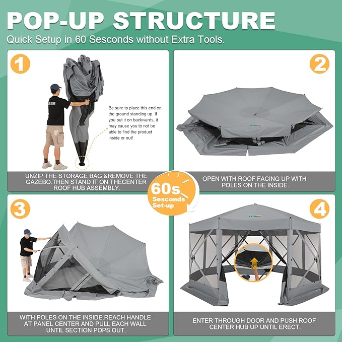 - ✅【Effortless Setup with No Tools Required】 Designed for convenience, our pop-up screen house tent features a quick and easy pop-up design. No tools are needed, allowing you to set up in minutes. Perfect for camping trips and outdoor gatherings, it comes with a carrying bag for hassle-free transport and storage.