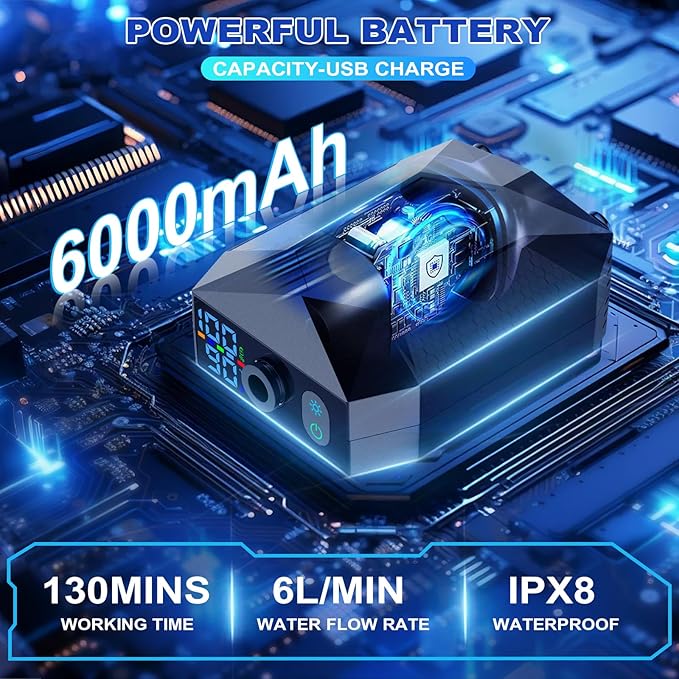 - 【Extended Battery Life】With a long-lasting 6000mAh battery capacity, our rechargeable shower pump can work continuously for 120-150 minutes. Stay charged anywhere via the universal Type-C port, compatible with phone chargers (5V 2A), power banks, car USB, and more. The charging port is equipped with a silicone waterproof cover to ensure safe use.