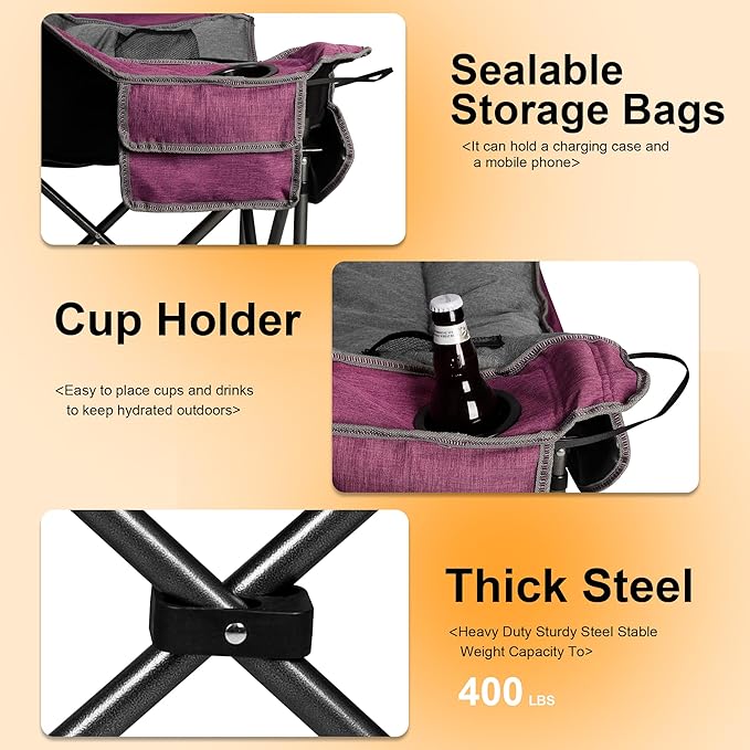 - ππππππππ & πππππ-ππππ: The Collapsible and foldable design allows for convenient storage and transport, providing a thick and soft seat and a sturdy backrest for maximum support and a comfortable experience,Open Dimensions: 22" L x 38.58" W x 38.9"H, Folded Dimensions: 7.87"L x 7.87" W x 40.55" H , weight is 8.82lbs, 400 lbs weight capacity,large seat area with 500x 500D padded oxford fabric.