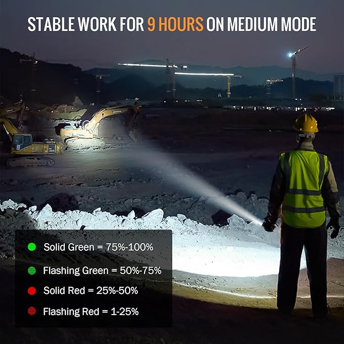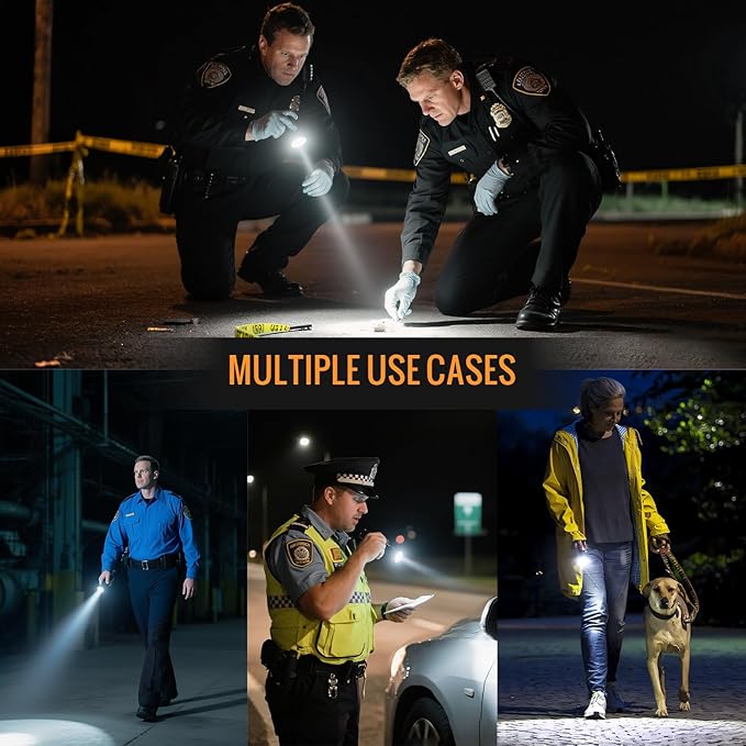 - 6 Light Modes: Suitable for tactical law enforcement, security, self-defense, outdoor work, emergency lighting, and various outdoor activities, with 6 output modes ranging from low-level, glare-free close-range tasks to high-visibility tactical use in any situation.