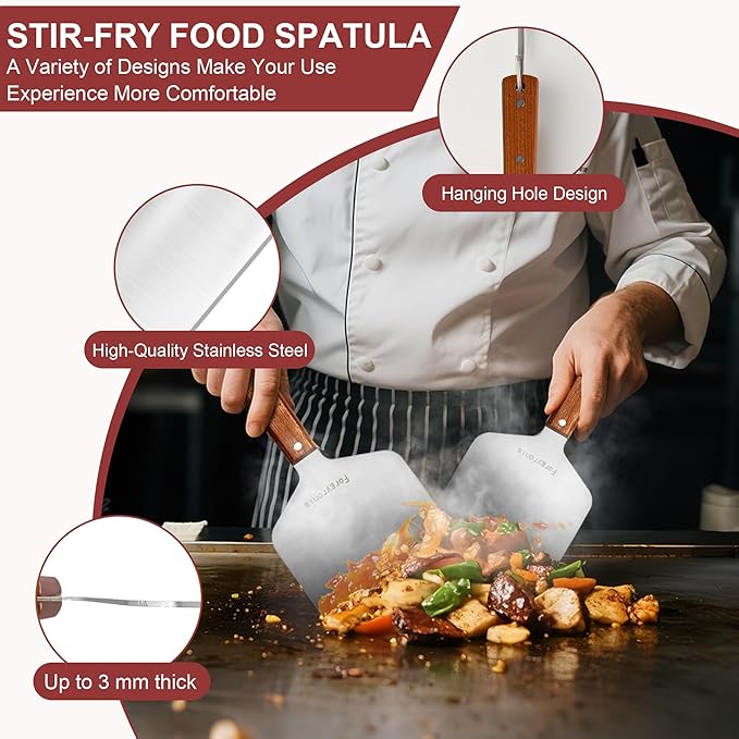 - 【EASY TO STORE】Our griddle spatula is designed with a hanging hole, which can be hung vertically near the sink or tool rack for easy access and ventilation and drying. It can remain hygienic and durable even in humid environments.