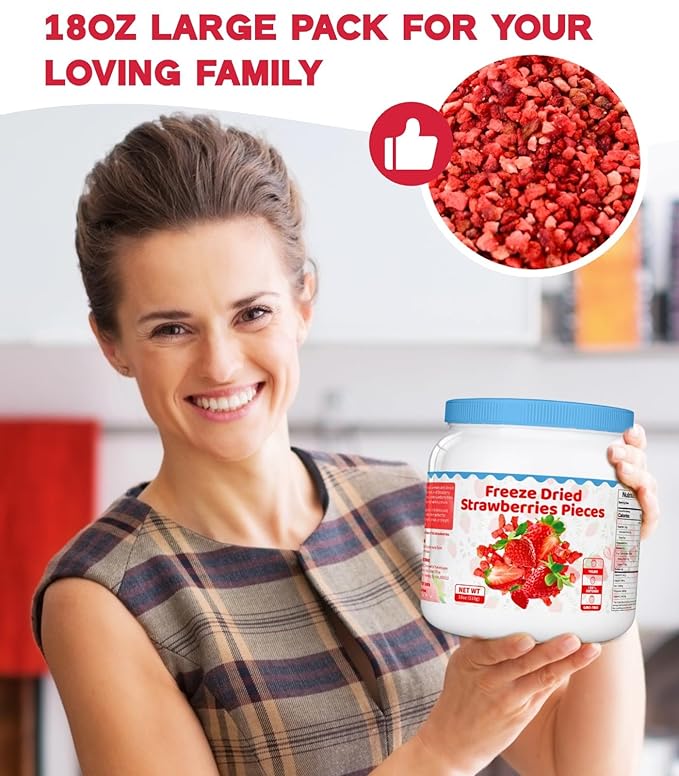 - Fresh-Locked in a Protective White Can: Packed in a light-resistant white container, our strawberries stay fresher longer by blocking light and moisture. The sturdy, resealable can is ideal for long-term storage, and smaller pieces are perfect for smoothies, batters, or drinks.