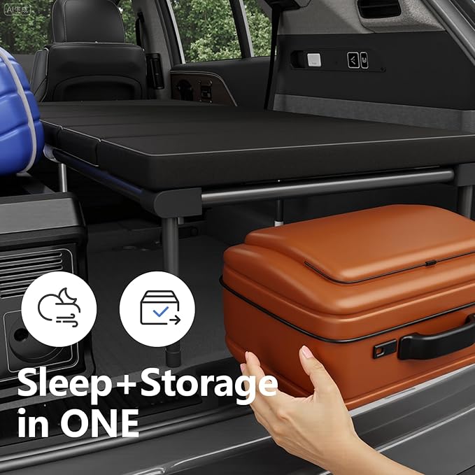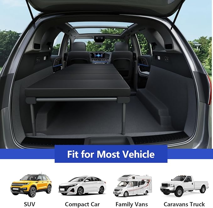 - 【Space-Saving Design】:The bed frame length is adjustable, perfectly fitting various car models. When folded, it becomes compact, effortlessly fitting into your trunk without taking up extra space.
