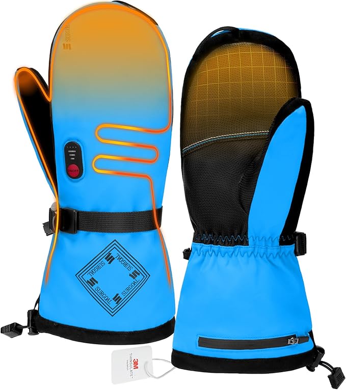 Heated Gloves for Men, 7.4V Heated Mittens for Women Rechargeable, PU Waterproof & Touchscreen Ideal for Winter, Hunting, Motorcycle, Skiing, Snowboarding, Fishing, Camping, Work